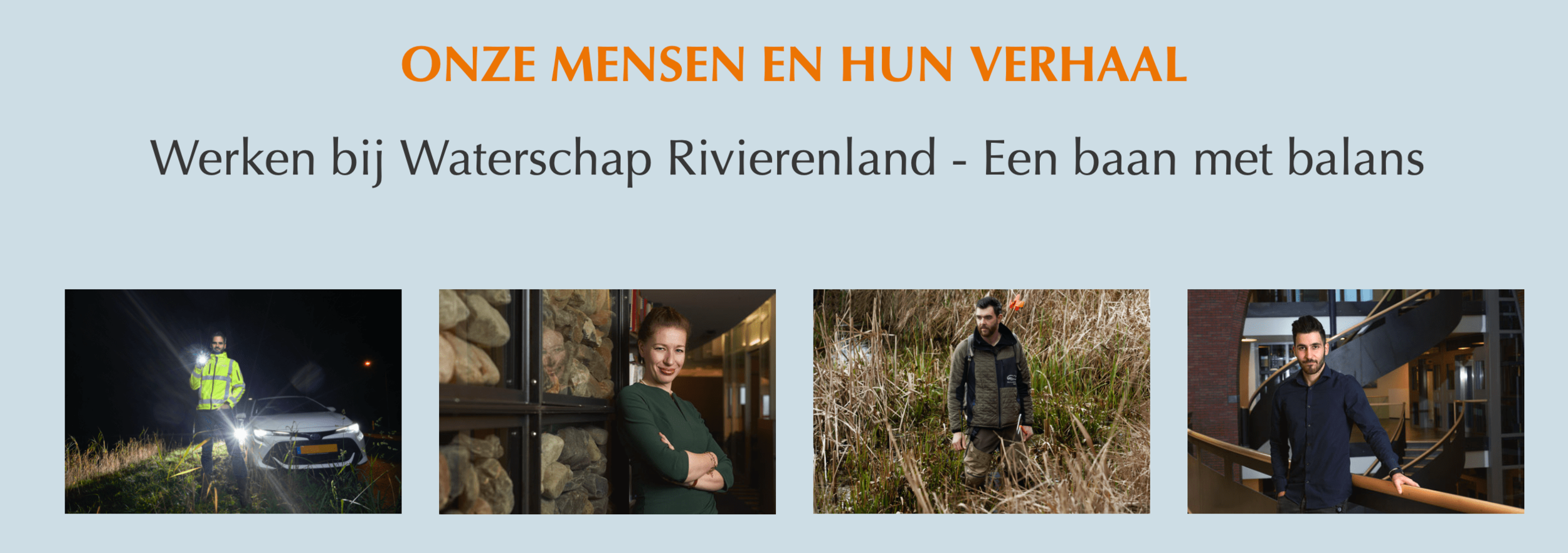 “Het denken in verhalen is voor mij belangrijk voor het overbrengen van onze boodschap naar de arbeidsmarkt. Sfeer en emotie overbrengen is het doel. Door het delen van authentieke verhalen maken wij onze boodschap uniek en geven wij Waterschap Rivierenland een gezicht.”