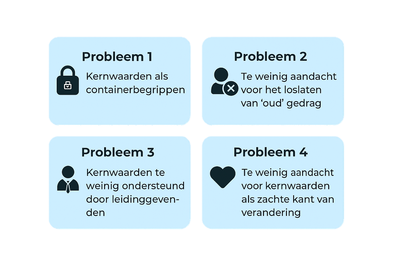 Probleem 3. Te weinig aandacht voor kernwaarden als zachte kant van verandering